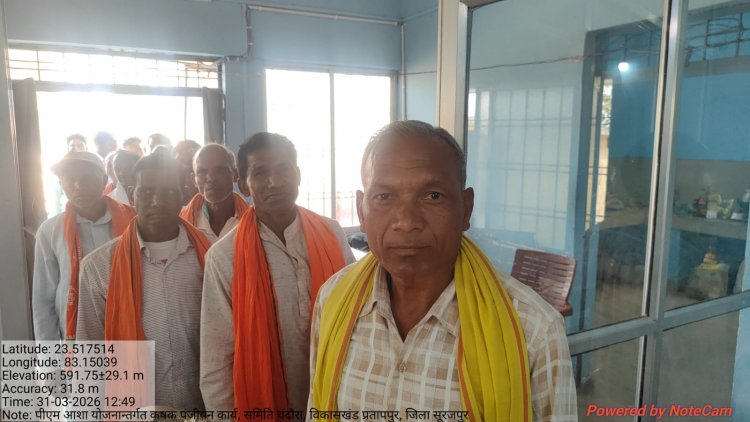 सूरजपुर : कलेक्टर श्री एस. जयवर्धन के निर्देशानुसार एवं डीडीए एग्रीकल्चर सुश्री संपदा पैकरा के मार्गदर्शन में आज आकांक्षी विकासखंड प्रतापपुर में किसानों के हित में महत्वपूर्ण पहल की गई। ग्राम पंचायत सोनगरा एवं सकलपुर के कुल 22 कृषकों ने दलहन एवं तिलहन की खरीदी के लिए चयनित समिति चंदौरा में उपस्थित होकर प्रधानमंत्री आशा योजना के अंतर्गत अपना पंजीयन कराया।