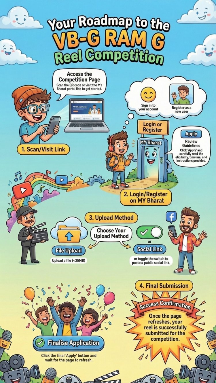 इस योजना के अंतर्गत युवा 60 सेकंड (एक मिनट) का रील या वीडियो बनाकर माय भारत पोर्टल पर अपलोड कर सकते हैं। इसके साथ ही वीबी-जी राम जी योजना पर आधारित ऑनलाइन क्विज प्रतियोगिता में भी भाग लेकर अपनी जानकारी और कौशल का प्रदर्शन कर सकते हैं।