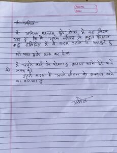 एएसपी अभिषेक झा ने बताया कि पुलिस यह जांच कर रही है कि मृतक पर कितना कर्ज था और उसे कौन परेशान कर रहा था। सुसाइड नोट में अनिल ने लिखा कि वह अपने जीवन से बहुत परेशान था और इसी कारण यह कदम उठाने के लिए मजबूर हुआ। उसने अपने माता-पिता से क्षमा मांगते हुए लिखा कि वह कर्ज से परेशान था और कृपया उसके कर्ज माफ करने की व्यवस्था की जाए।