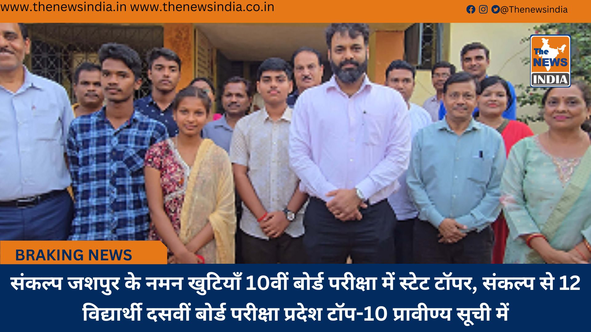संकल्प जशपुर के नमन खुटियाँ 10वीं बोर्ड परीक्षा में स्टेट टॉपर, संकल्प से 12 विद्यार्थी दसवीं बोर्ड परीक्षा प्रदेश टॉप-10 प्रावीण्य सूची में