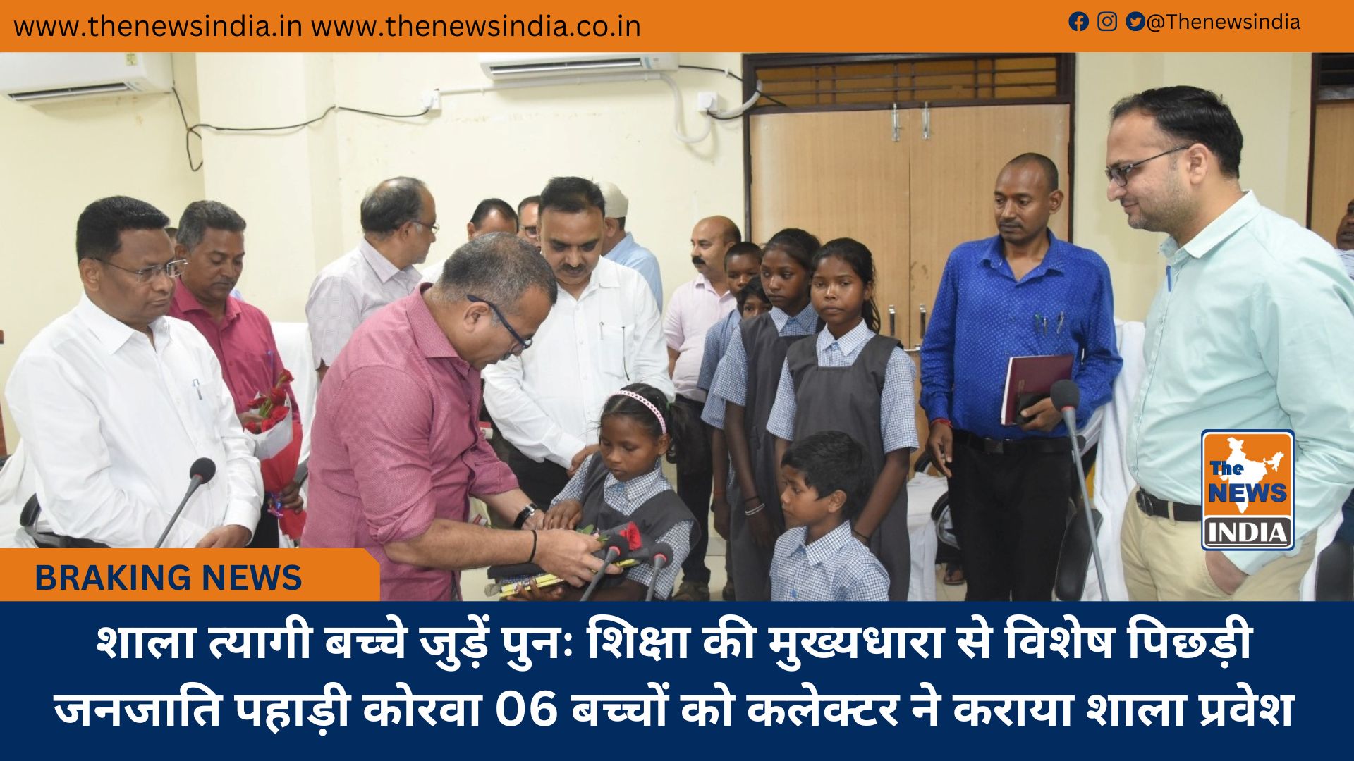 शाला त्यागी बच्चे जुड़ें पुनः शिक्षा की मुख्यधारा से विशेष पिछड़ी जनजाति पहाड़ी कोरवा 06 बच्चों को कलेक्टर ने कराया शाला प्रवेश