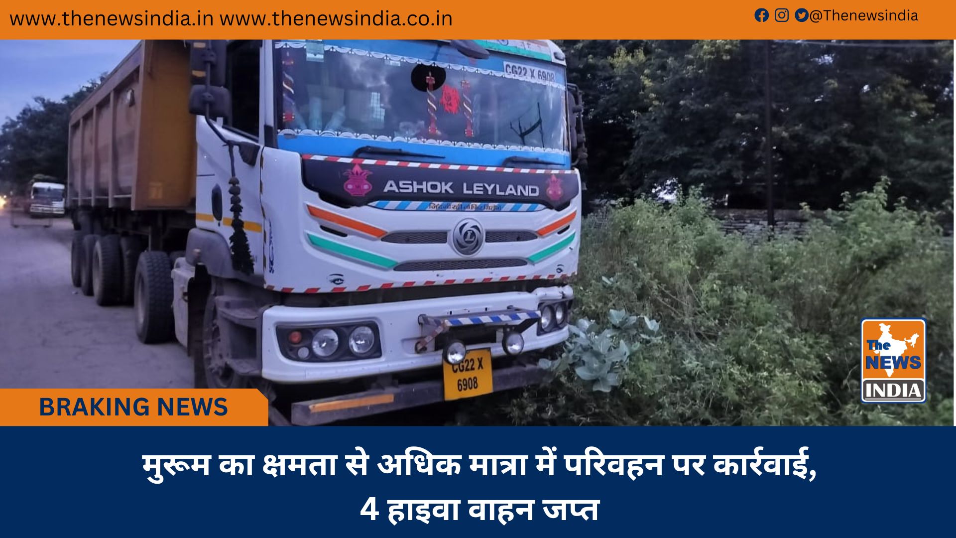 मुरूम का क्षमता से अधिक मात्रा में परिवहन पर कार्रवाई, 4 हाइवा वाहन जप्त