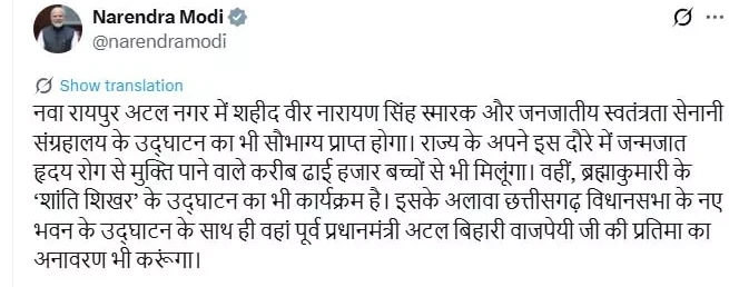 रायपुर : रायपुर आज ऐतिहासिक दिन का साक्षी बनने जा रहा है। प्रधानमंत्री नरेंद्र मोदी छत्तीसगढ़ की राजधानी रायपुर अपने एक दिवसीय दौरे पर पहुंचे। आज राज्य अपनी स्थापना दिवस मना रहा है और इसी अवसर पर पीएम मोदी राज्योत्सव कार्यक्रम में शामिल होंगे। प्रधानमंत्री मोदी सुबह 7:35 बजे दिल्ली से रवाना हुए और 9:45 बजे रायपुर एयरपोर्ट पर पहुंचेंगे। एयरपोर्ट पर सुरक्षा के कड़े इंतज़ाम किए गए हैं। आम नागरिकों को केवल ड्रॉप सुविधा दी जा रही है, जबकि आसपास के गांवों में सशस्त्र जवानों का सुरक्षा घेरा बनाया गया है। एयरपोर्ट से सीधे सत्य साईं हॉस्पिटल पहुंचेंगे पीएम मोदी, जहां वे “दिल की बात” कार्यक्रम में भाग लेंगे। यह कार्यक्रम सुबह 10 बजे से 10:35 बजे तक चलेगा, जिसमें प्रधानमंत्री ने जनता से संवाद करते हुए स्वास्थ्य और जीवन के संदेश साझा करेंगे। इसके बाद प्रधानमंत्री मोदी ब्रह्माकुमारी संस्थान में आयोजित विशेष कार्यक्रम में भाग लेंगे। सुबह 10:45 से 11:30 बजे तक होने वाले इस आयोजन में वे आध्यात्मिकता, सकारात्मक सोच और समाज सेवा से जुड़े संदेश देंगे। दोपहर बाद प्रधानमंत्री मोदी राज्य की गर्व की पहचान बनने वाले नए विधानसभा भवन का लोकार्पण करेंगे। नवा रायपुर की आधुनिक पहचान को मजबूत करते हुए, वे यहां ट्राइबल म्यूजियम का भी उद्घाटन करेंगे, जो छत्तीसगढ़ की जनजातीय संस्कृति और परंपरा को नई पहचान देगा। प्रधानमंत्री मोदी शाम को राज्योत्सव कार्यक्रम में शिरकत करेंगे, जहां वे छत्तीसगढ़ की 25वीं वर्षगांठ पर जनता को संबोधित करेंगे। राज्योत्सव मंच से मोदी कई विकास परियोजनाओं का ऐलान भी कर सकते हैं।