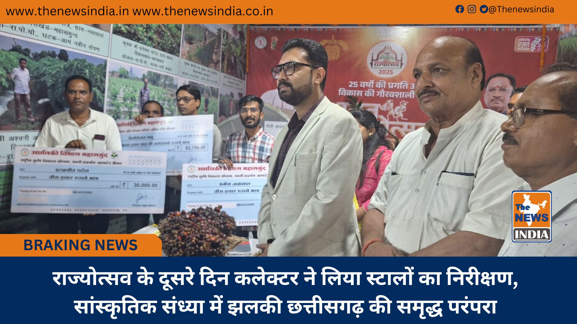 राज्योत्सव के दूसरे दिन कलेक्टर ने लिया स्टालों का निरीक्षण, सांस्कृतिक संध्या में झलकी छत्तीसगढ़ की समृद्ध परंपरा