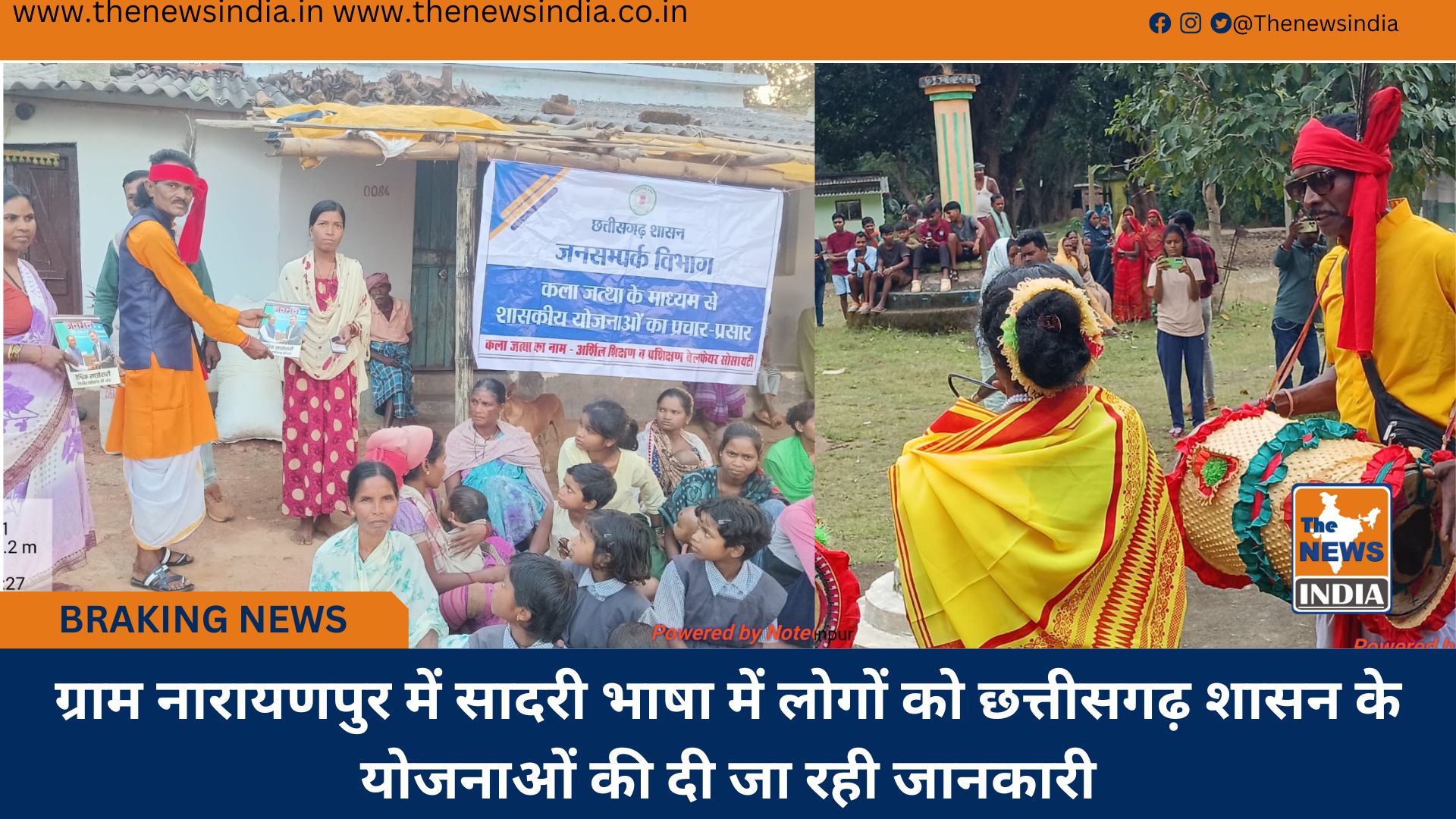 ग्राम नारायणपुर में सादरी भाषा में लोगों को छत्तीसगढ़ शासन के योजनाओं की दी जा रही जानकारी