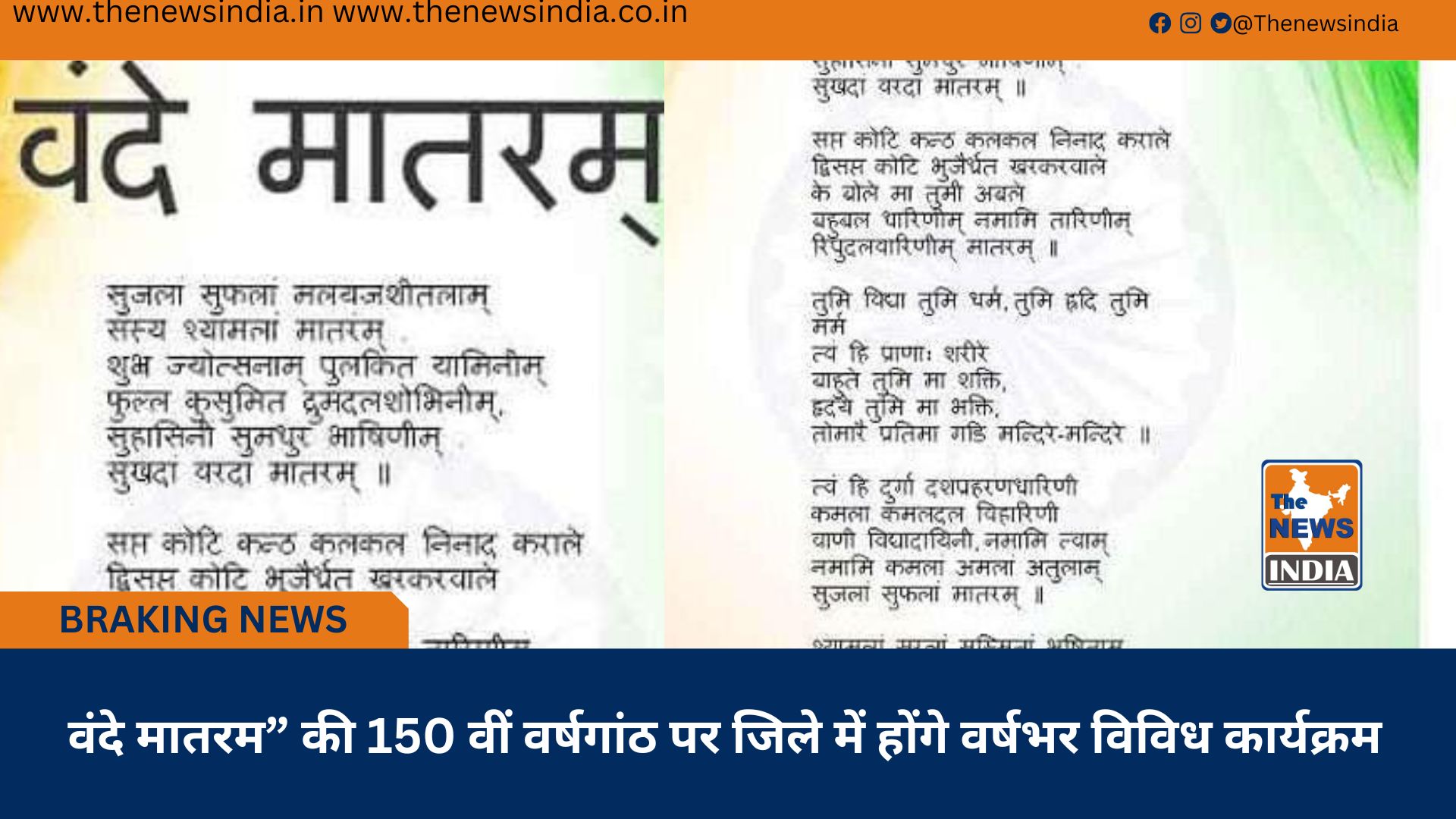 वंदे मातरम” की 150 वीं वर्षगांठ पर जिले में होंगे वर्षभर विविध कार्यक्रम