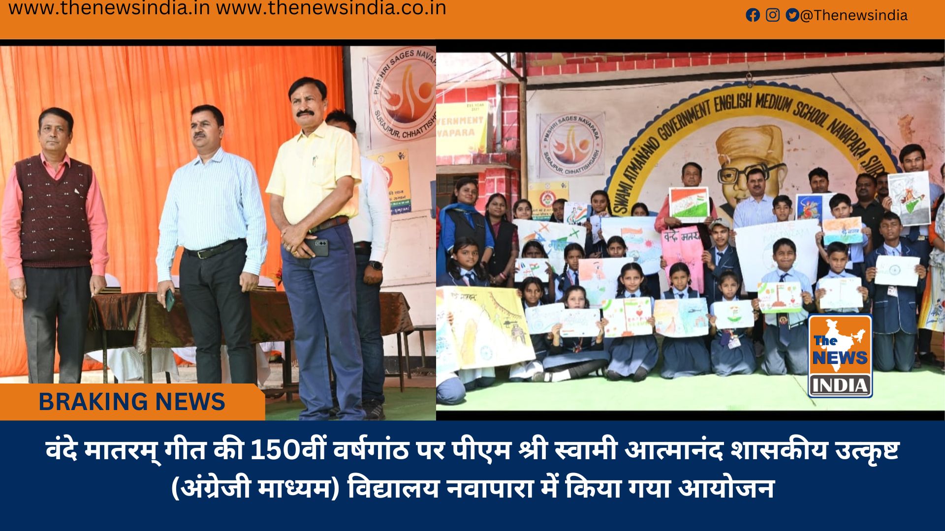 वंदे मातरम् गीत की 150वीं वर्षगांठ पर पीएम श्री स्वामी आत्मानंद शासकीय उत्कृष्ट (अंग्रेजी माध्यम) विद्यालय नवापारा में किया गया आयोजन