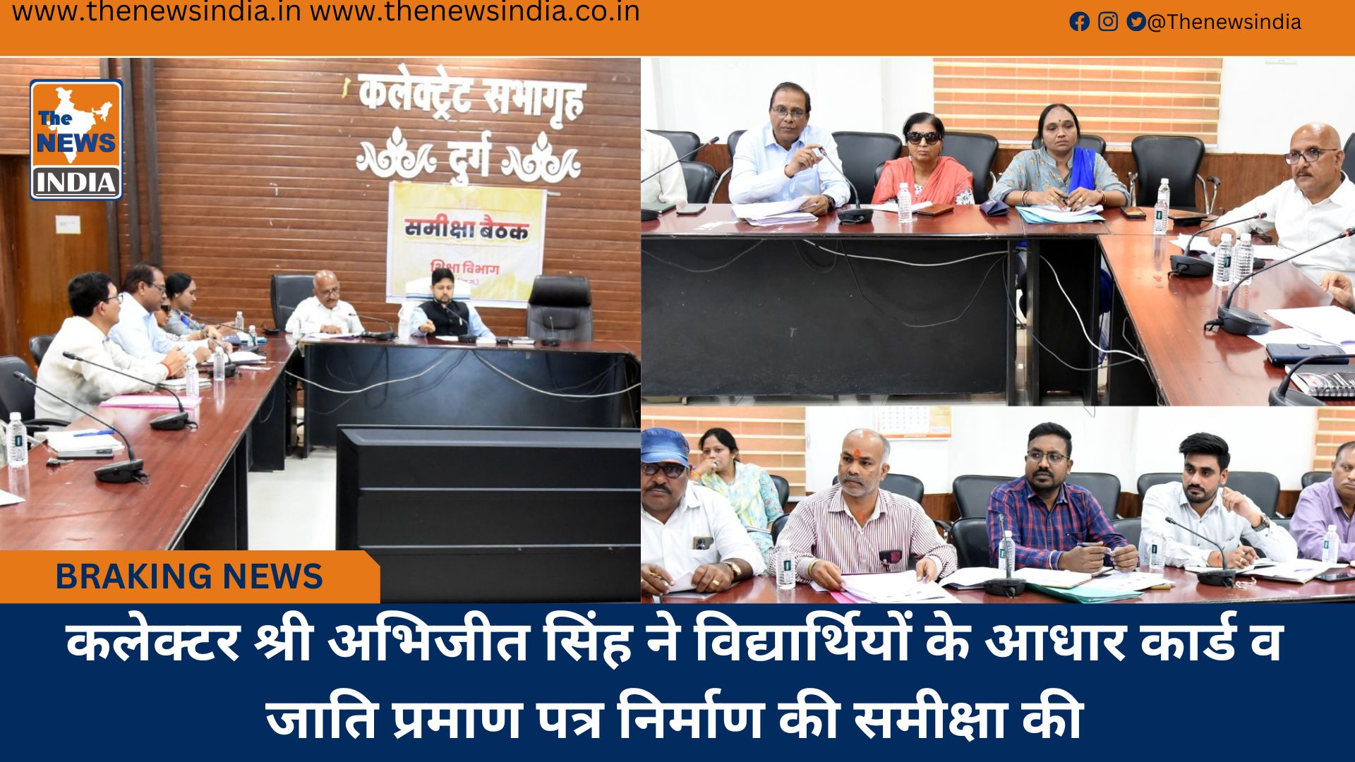 कलेक्टर श्री अभिजीत सिंह ने विद्यार्थियों के आधार कार्ड व जाति प्रमाण पत्र निर्माण की समीक्षा की