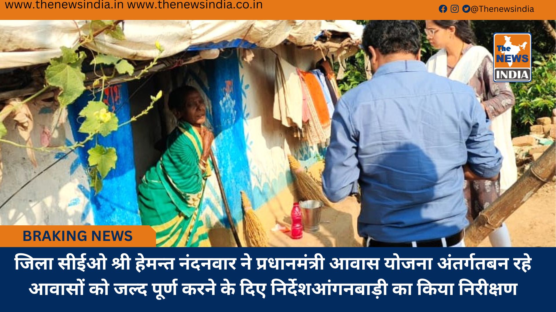 जिला सीईओ श्री हेमन्त नंदनवार ने प्रधानमंत्री आवास योजना अंतर्गतबन रहे आवासों को जल्द पूर्ण करने के दिए निर्देशआंगनबाड़ी का किया निरीक्षण