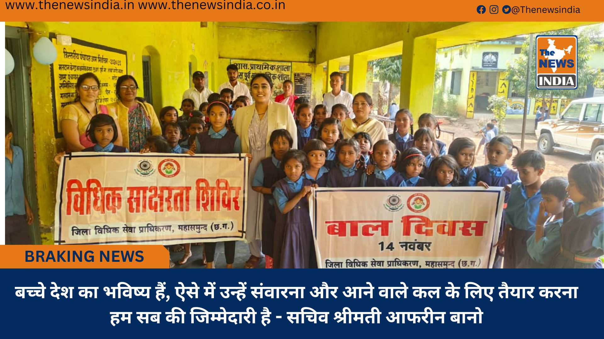 महासमुंद : नालसा एवं छत्तीसगढ़ राज्य विधिक सेवा प्राधिकरण बिलासपुर के स्टेट प्लान आफ एक्शन के तहत विशेष राष्ट्रीय एवं अंतर्राष्ट्रीय दिवसों के अवसर पर आयोजित होने वाले शिविर व कार्यक्रम के तहत आज 14 नवंबर ’’बाल दिवस’’ के अवसर पर जिला विधिक सेवा प्राधिकरण के अध्यक्ष तथा प्रधान जिला एवं सत्र न्यायाधीश श्रीमती अनिता डहरिया के मार्गदर्शन पर शिविर आयोजित किया गया। बाल दिवस के अवसर पर जिला विधिक सेवा प्राधिकरण की सचिव श्रीमती आफरीन बानो द्वारा शासकीय मिडिल स्कूल बरोंडा बाजार और व्यवहार न्यायालय बागबाहरा के न्यायिक मजिस्ट्रेट प्रथम श्रेणी श्री अविनाश टोप्पो द्वारा कार्मेल स्कूल बागबाहरा में कानून के जागरूकता विषयों पर अधारित शिविर आयोजित किया गया।