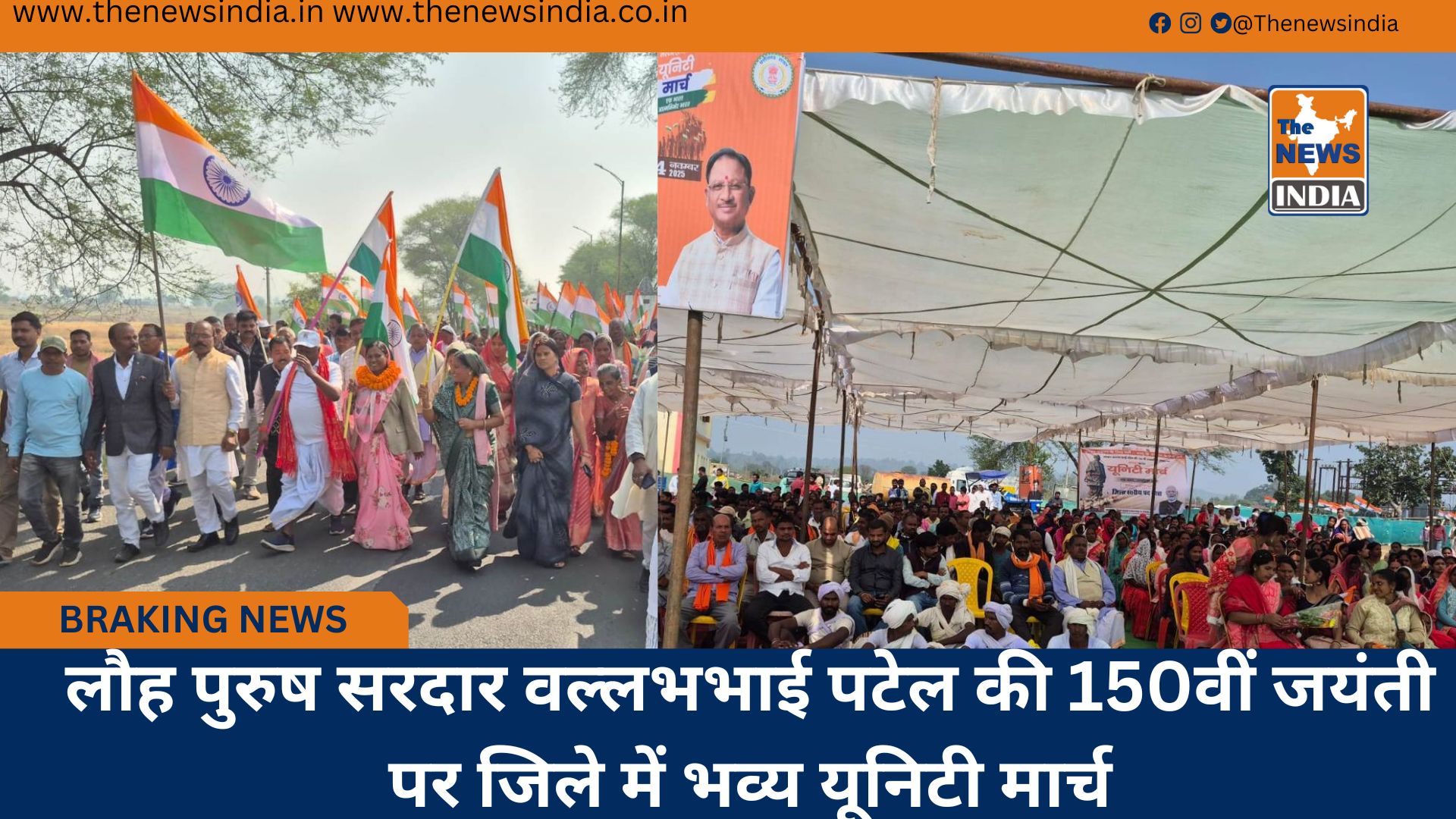 लौह पुरुष सरदार वल्लभभाई पटेल की 150वीं जयंती पर जिले में भव्य यूनिटी मार्च