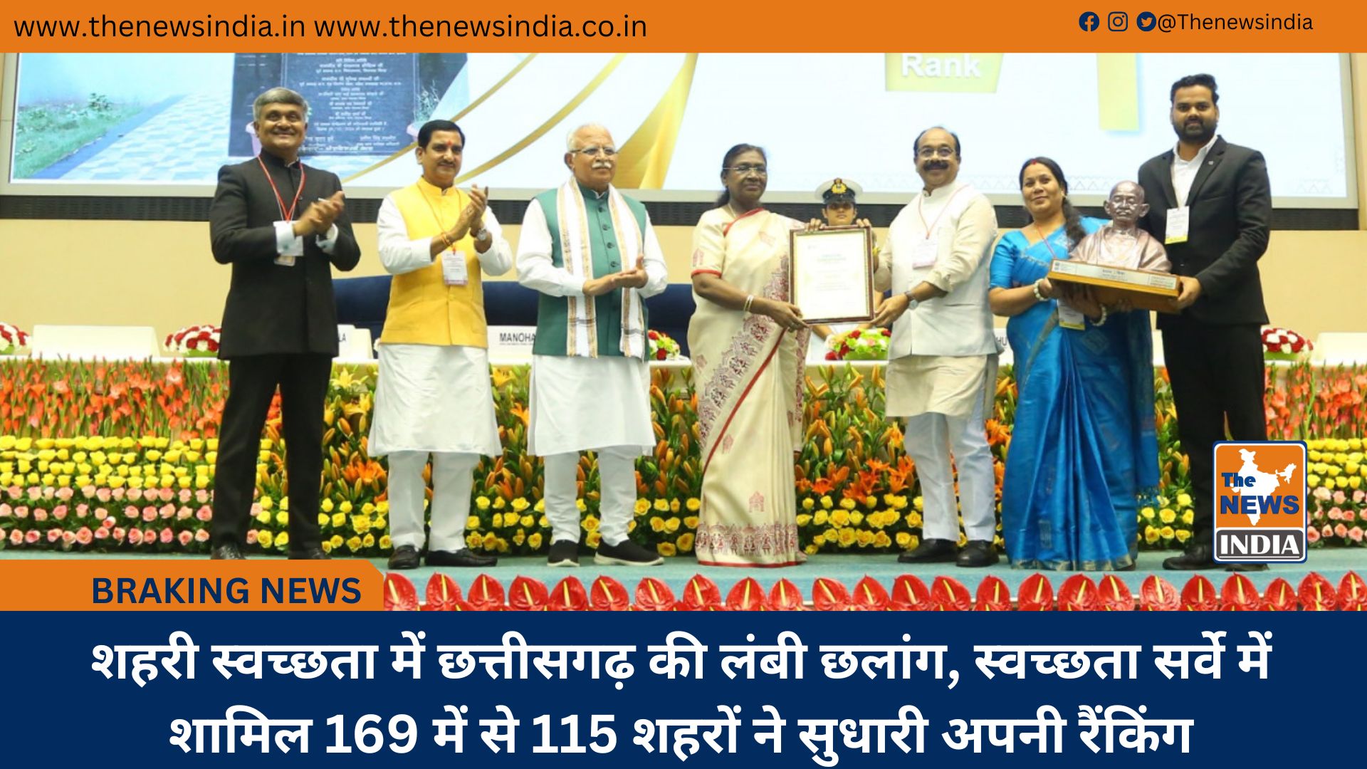 शहरी स्वच्छता में छत्तीसगढ़ की लंबी छलांग, स्वच्छता सर्वे में शामिल 169 में से 115 शहरों ने सुधारी अपनी रैंकिंग