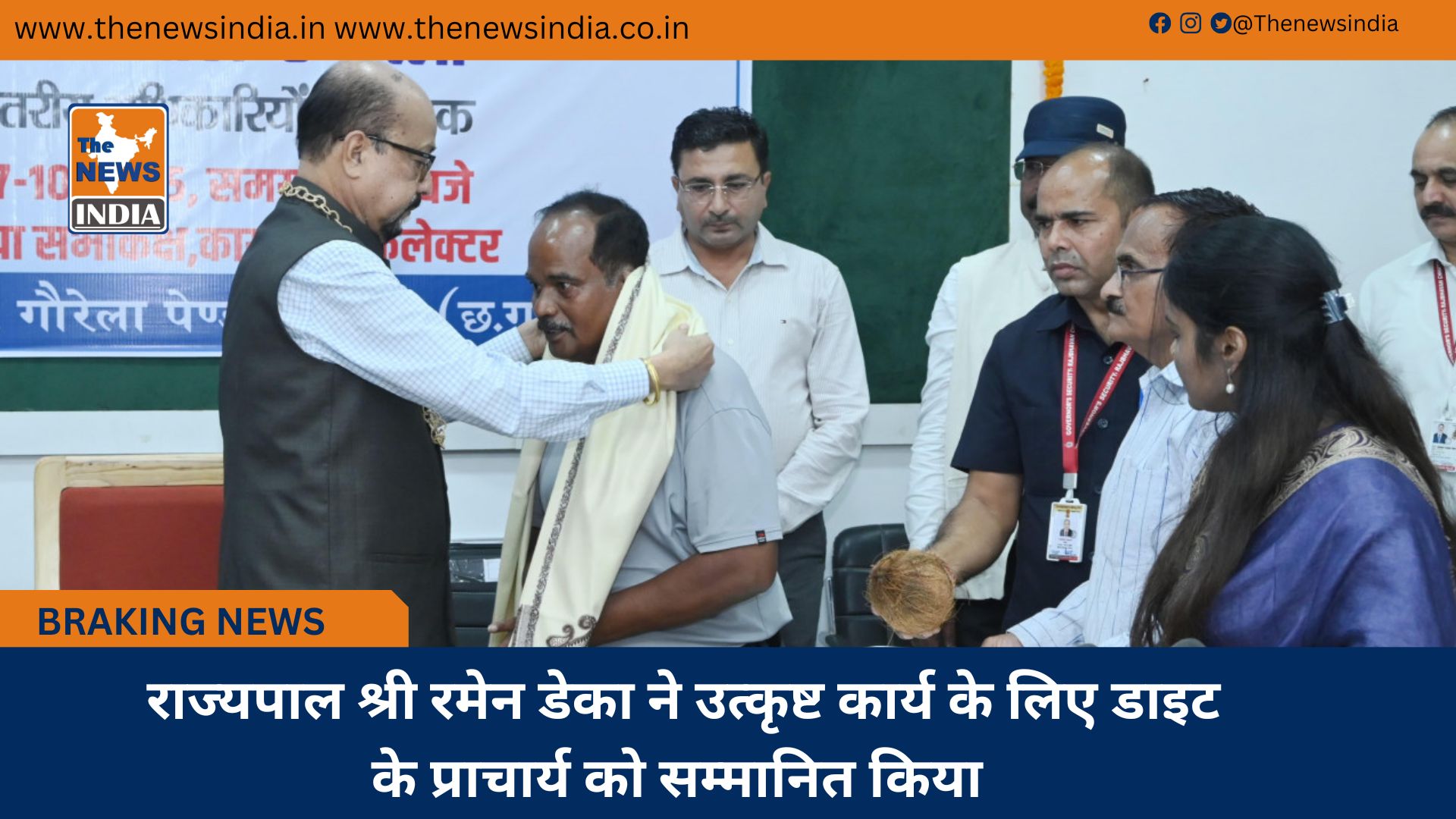राज्यपाल श्री रमेन डेका ने उत्कृष्ट कार्य के लिए डाइट के प्राचार्य को सम्मानित किया