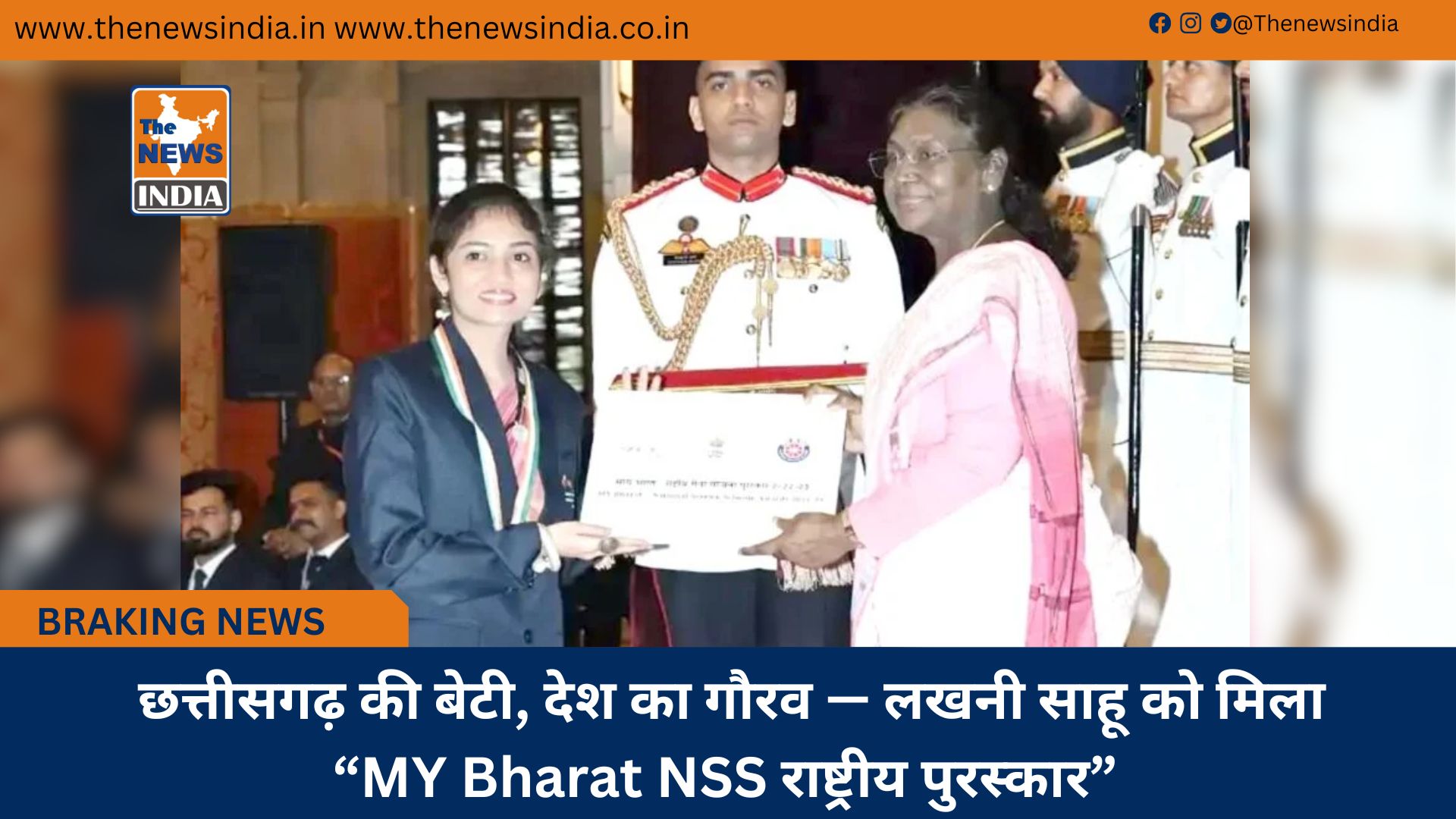 राष्ट्रपति श्रीमती द्रौपदी मुर्मू ने उन्हें “MY Bharat NSS राष्ट्रीय पुरस्कार (2022-23)” से सम्मानित किया है। यह उपलब्धि न केवल लखनी साहू के अथक प्रयासों की पहचान है, बल्कि हर छत्तीसगढ़वासी के लिए गर्व और प्रेरणा का विषय है।