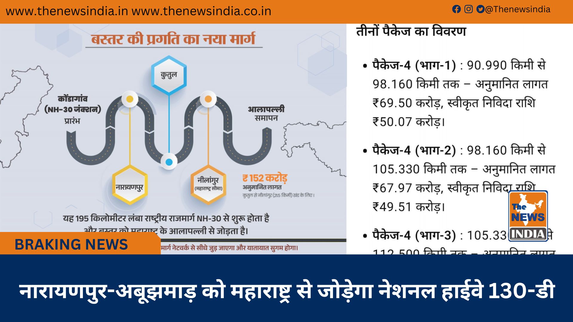 नारायणपुर-अबूझमाड़ को महाराष्ट्र से जोड़ेगा नेशनल हाईवे 130-डी