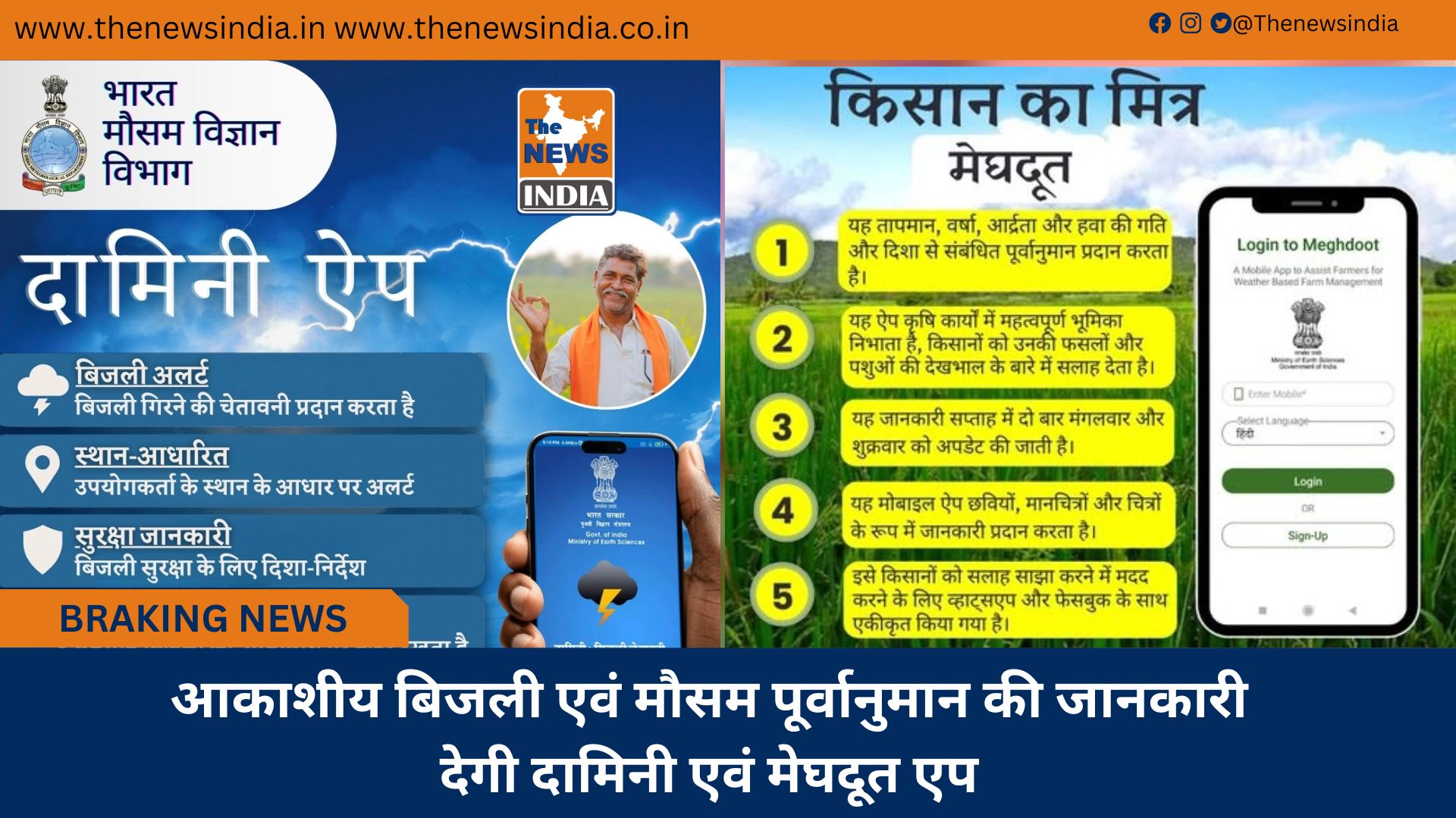 आकाशीय बिजली एवं मौसम पूर्वानुमान की जानकारी देगी दामिनी एवं मेघदूत एप