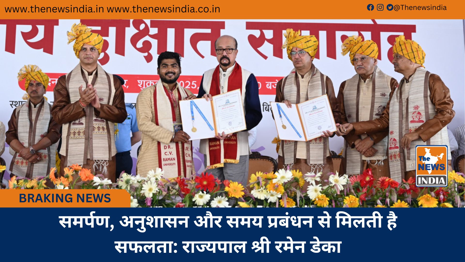 समर्पण, अनुशासन और समय प्रबंधन से मिलती है सफलता: राज्यपाल श्री रमेन डेका