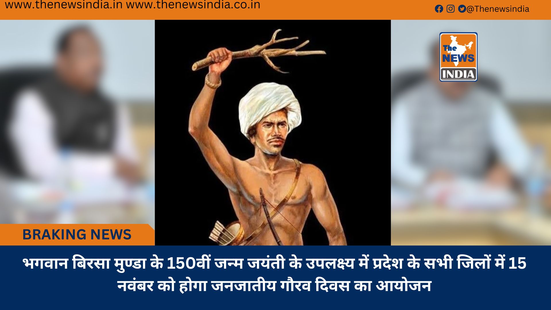 भगवान बिरसा मुण्डा के 150वीं जन्म जयंती के उपलक्ष्य में प्रदेश के सभी जिलों में 15 नवंबर को होगा जनजातीय गौरव दिवस का आयोजन