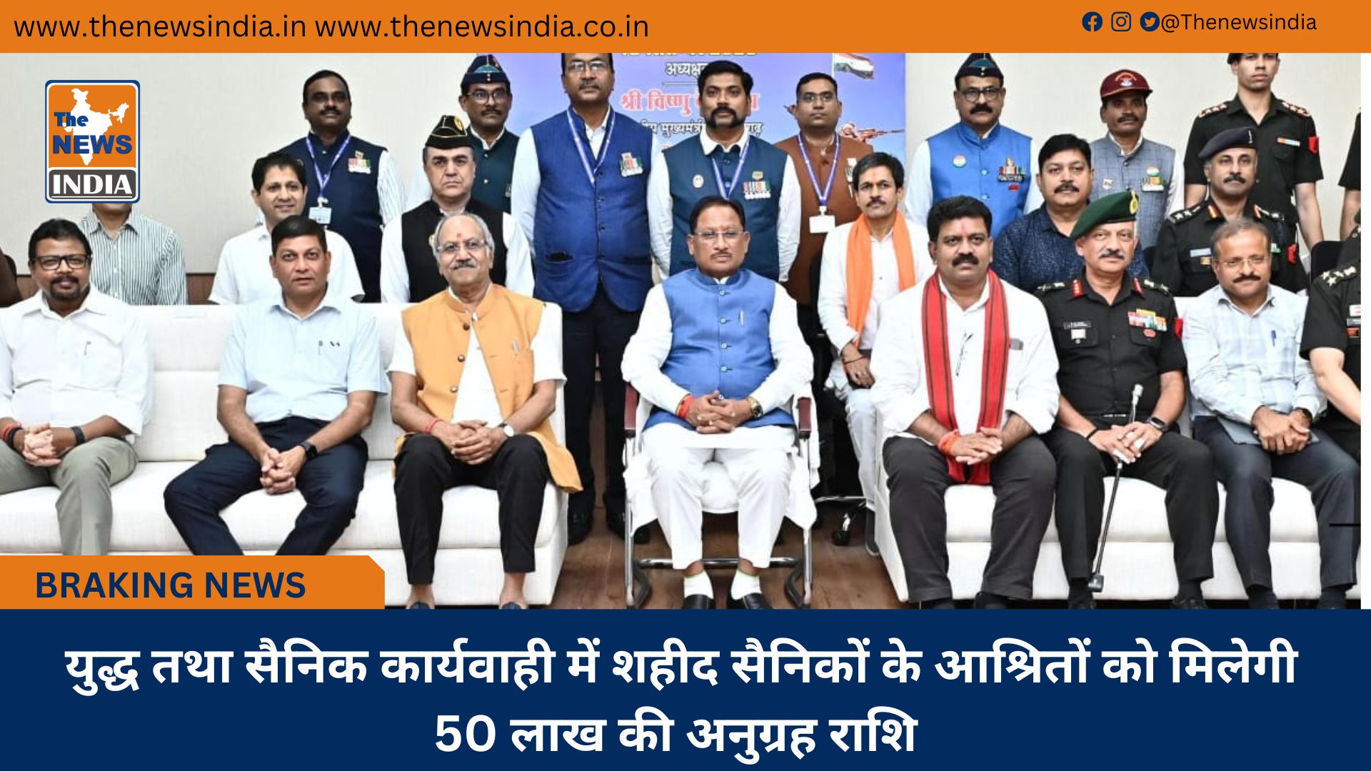 युद्ध तथा सैनिक कार्यवाही में शहीद सैनिकों के आश्रितों को मिलेगी 50 लाख की अनुग्रह राशि