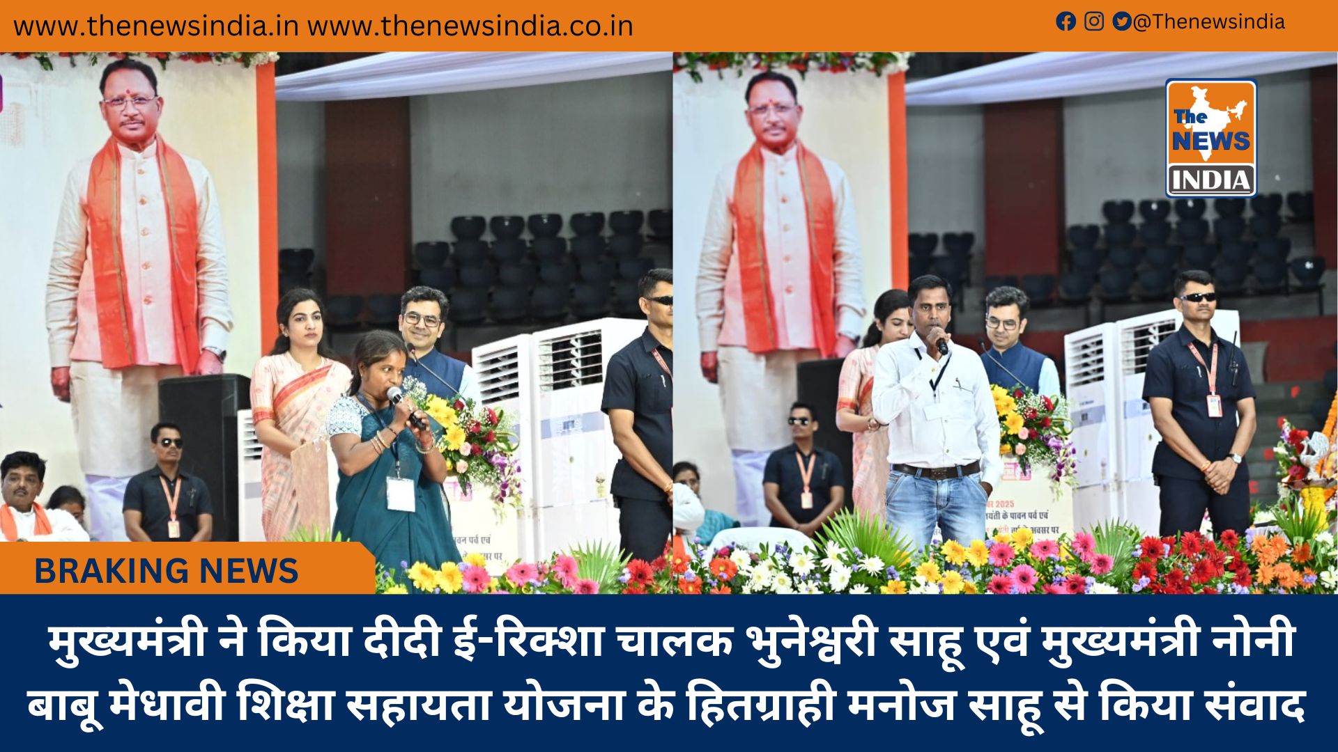 मुख्यमंत्री ने किया दीदी ई-रिक्शा चालक भुनेश्वरी साहू एवं मुख्यमंत्री नोनी बाबू मेधावी शिक्षा सहायता योजना के हितग्राही मनोज साहू से किया संवाद