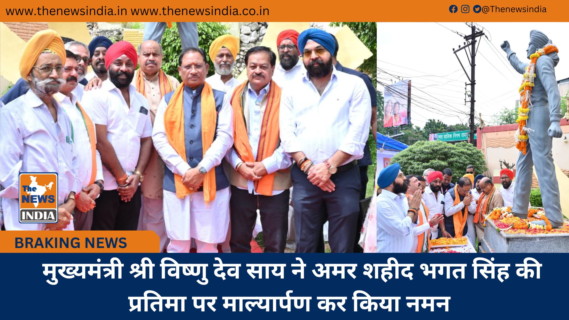 मुख्यमंत्री श्री विष्णु देव साय ने अमर शहीद भगत सिंह की प्रतिमा पर माल्यार्पण कर किया नमन
