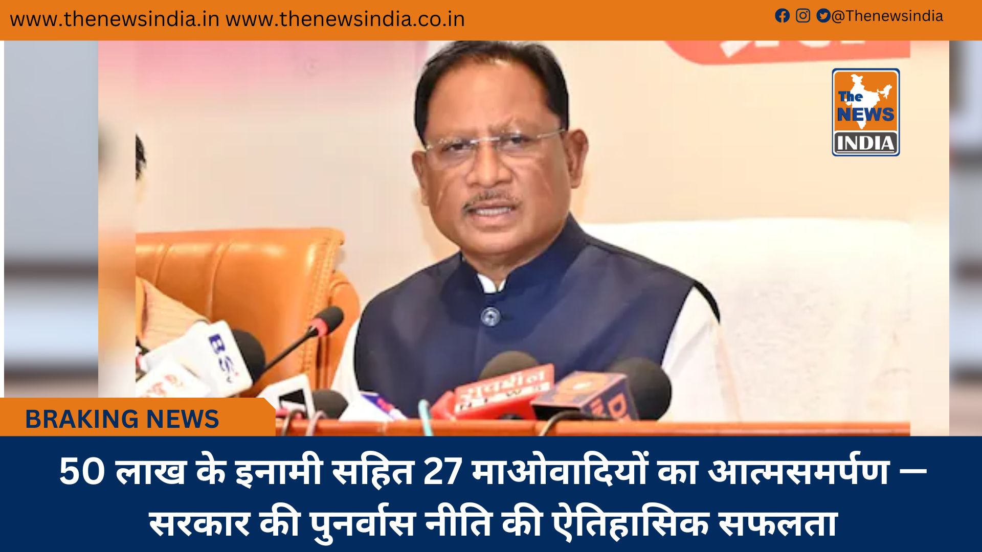 50 लाख के इनामी सहित 27 माओवादियों का आत्मसमर्पण — सरकार की पुनर्वास नीति की ऐतिहासिक सफलता