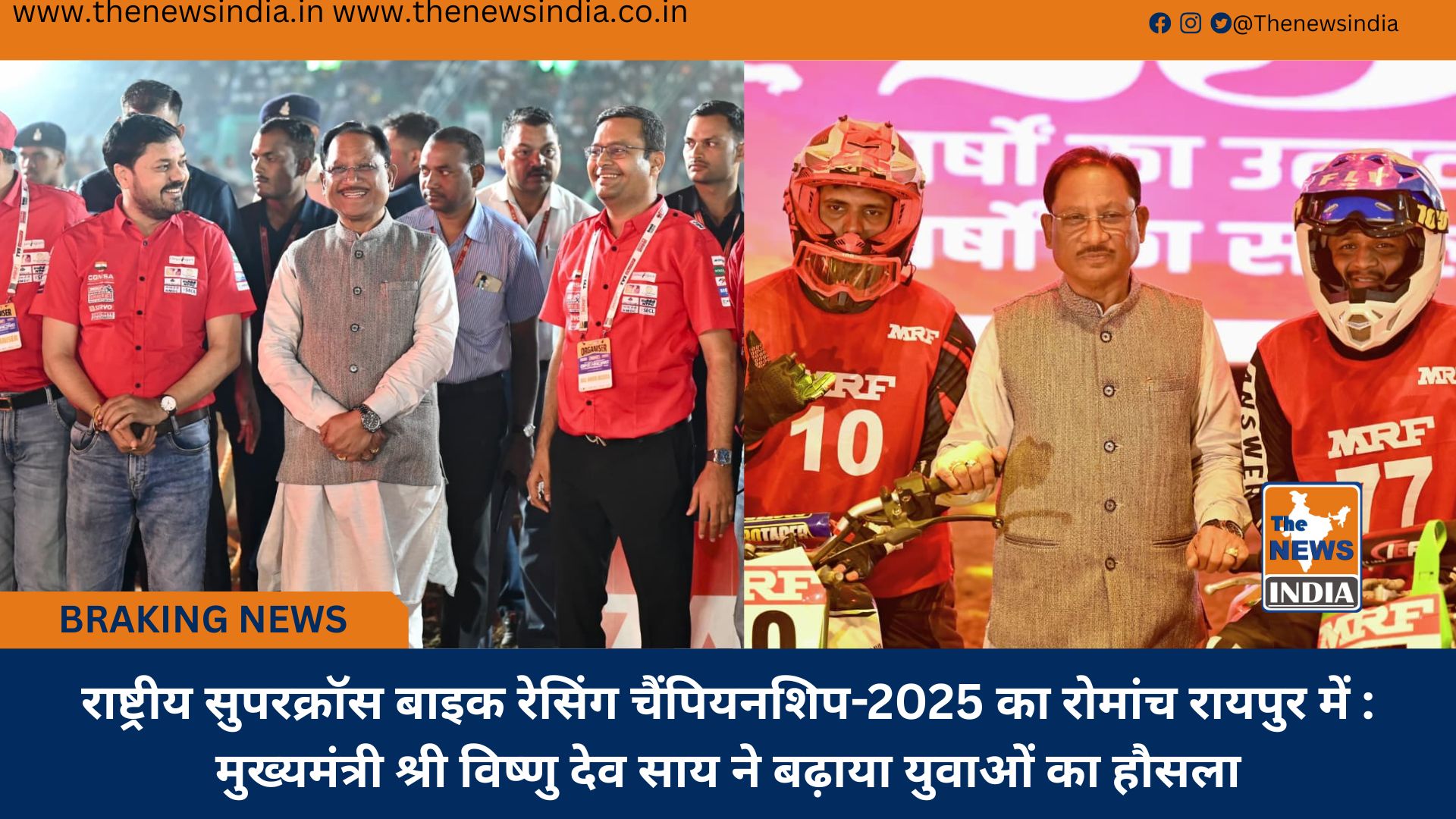 राष्ट्रीय सुपरक्रॉस बाइक रेसिंग चैंपियनशिप-2025 का रोमांच रायपुर में : मुख्यमंत्री श्री विष्णु देव साय ने बढ़ाया युवाओं का हौसला